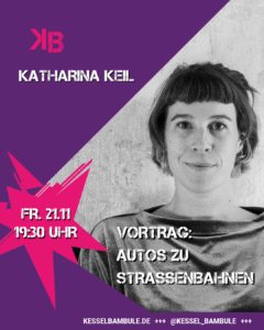 Im Vortrag von Katharina Keil geht es um die Zukunft der Automobilindustrie und darum, wie sie aus linker Perspektive gelingen kann.